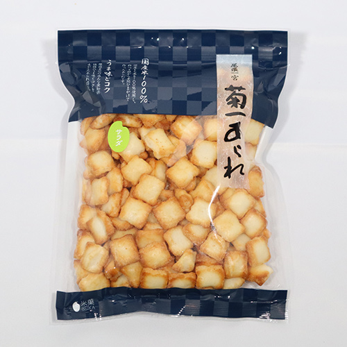 | 商品説明 | ふっくらと焼き上げたあられを鰹節と昆布のエキスを加えた特製塩で味付けした少し甘さが残るシンプルなあられ |